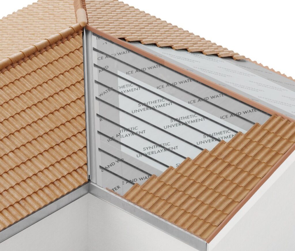Our versatile Hip/Ridge/Rake tile can be used on rake edges to complete a traditional tile aesthetic or to box in the rake and butt tile to the rake edge for a distinct appearance, providing a finished look while preventing water intrusion.